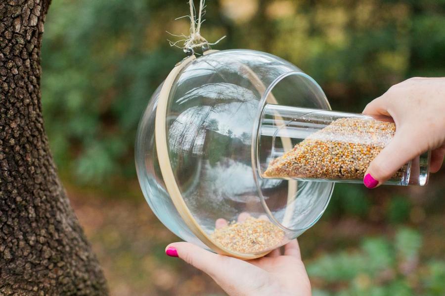 Скляні банки нам також згодяться — у них можна насипати корм та підвісити за допомогою дроту.