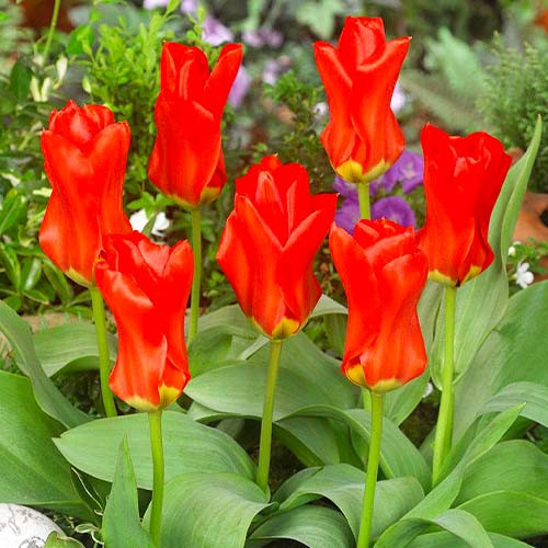 Популярні сорти: ‘Red Riding Hood’, ‘Oratorio’, ‘Toronto’ (цей тюльпан мультифлорний — дає кілька квіток з однієї цибулини).